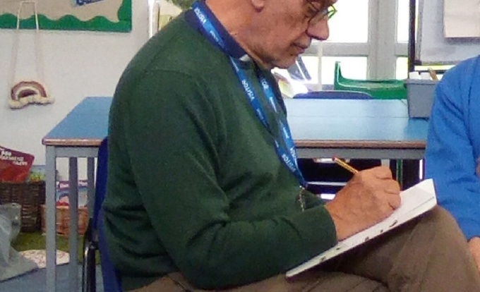 Today Rev Nick from St. Barnabas met with the worship council to discuss their ideas about WOW in St. Barnabas. The children told Rev Nick what they enjoyed, what they'd like to change, and gave him two new aspects to have during WOW - they'd like a ponder question for the end of WOW, and take part in drama when Rev Nick reads a Bible story.