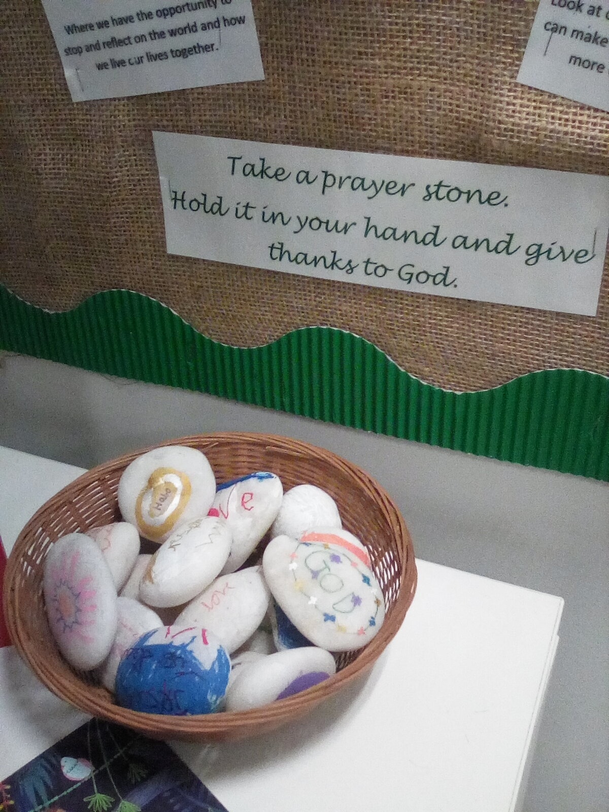The children of Swanmore Primary are invited to take a prayer stone and give thanks to God in the worship space in our school library.  Time to be reflective and still for a moment in our lives...
