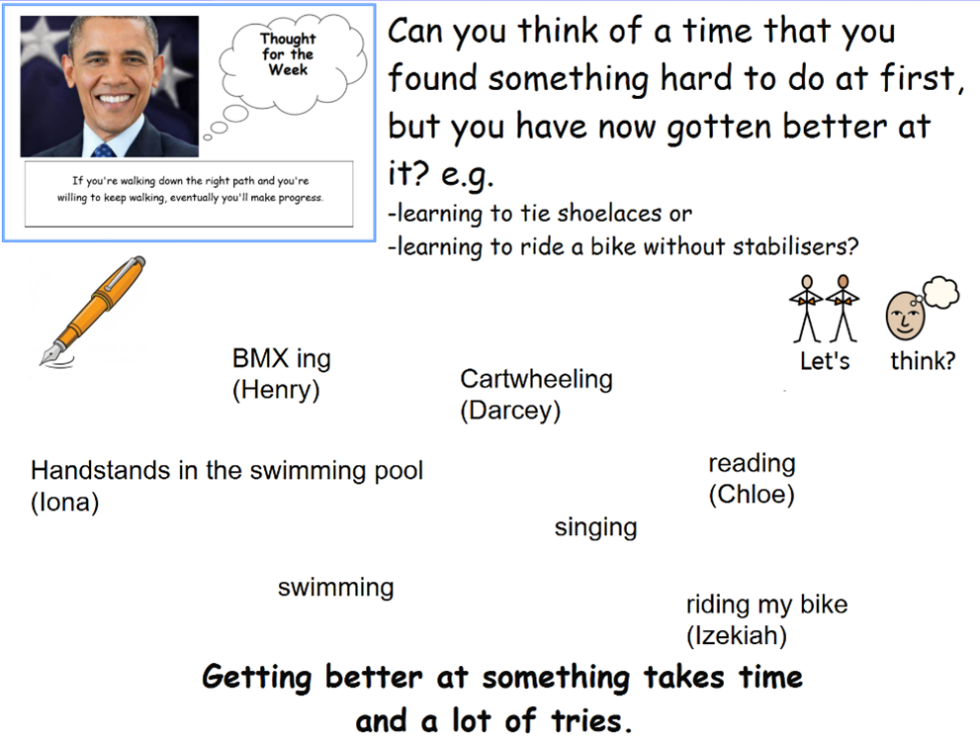 For our thought of the week “You must never be fearful about what you are doing when it is right” we began our thinking with a Philosophy For Children opening task of I see, I think, I wonder.