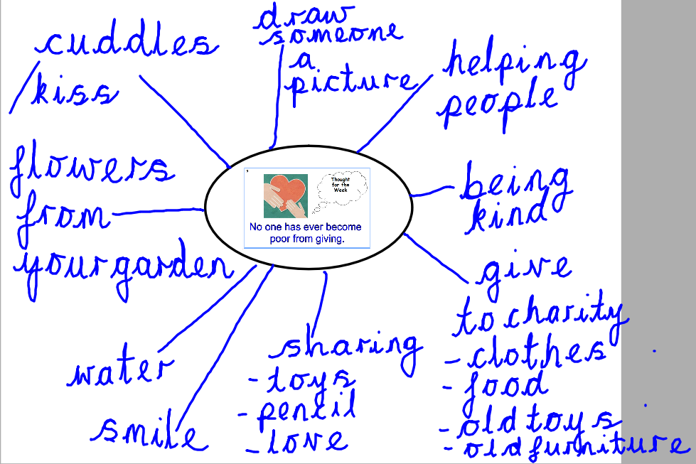 As a class we came up with all the ways we can help others that do not cost lots of money.