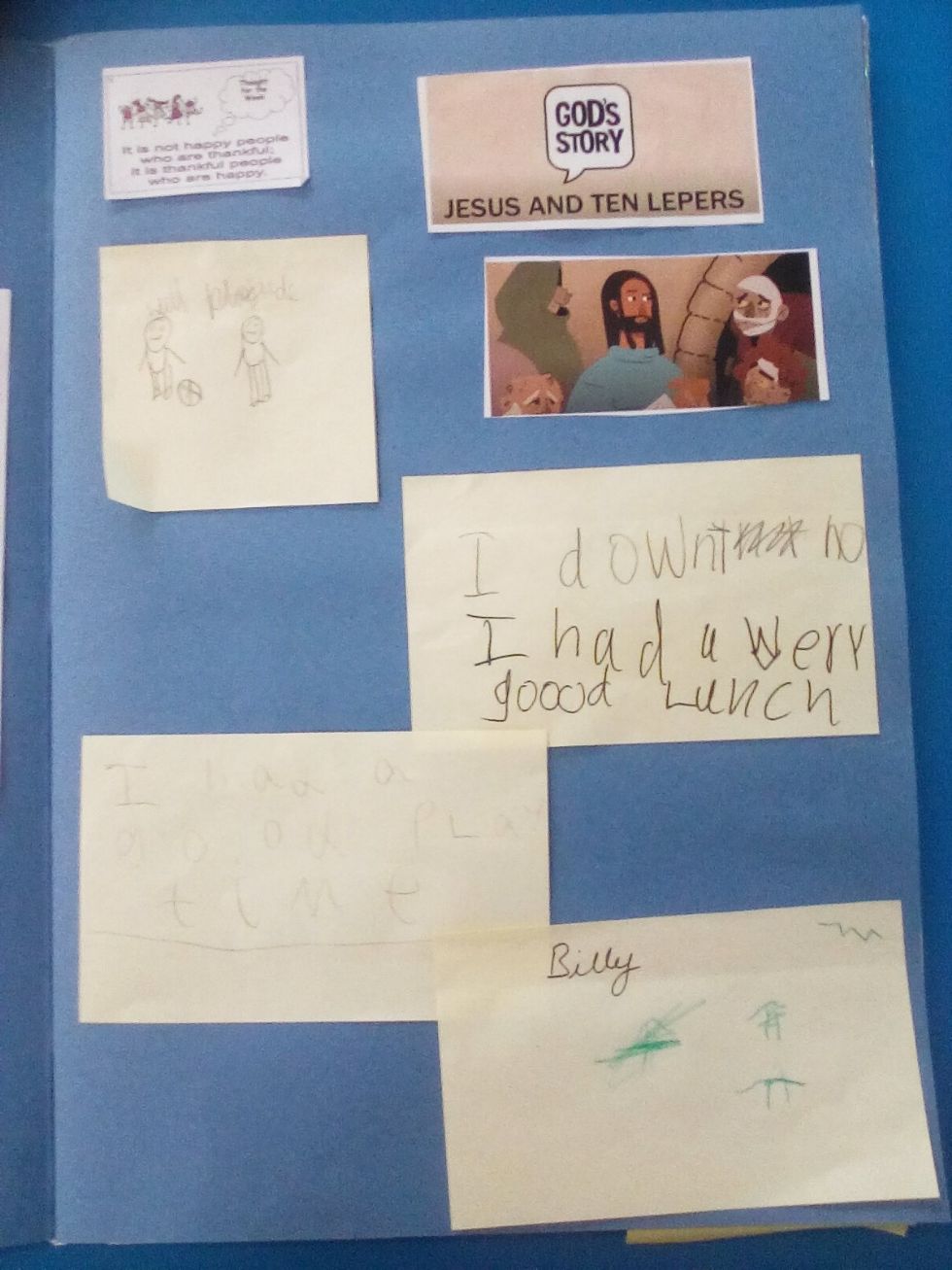 In year 3 we went outside into our school fields and found an object to hold whilst we said a silent prayer to God to be thankful for the wonderful world he has created for us. We used natural objects from around our school field.