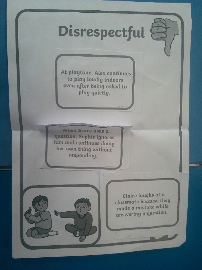 Finally, we sorted some cards into respectful or disrespectful choices: